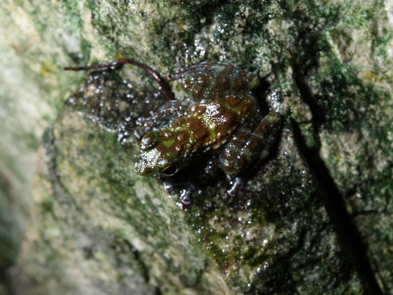 Wie kann man etwas sooo winziges (ca. 2cm) in freier Natur finden? Wir hatten am Wasserfall im Regenwaldhaus schon unsere Mühe damit.