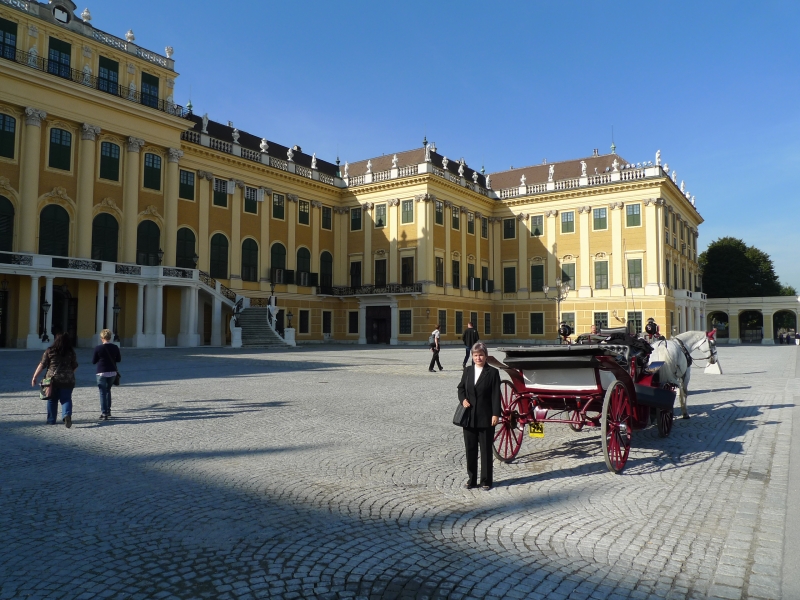 So sieht das Schloß Schönbrunn von außen aus. Natürlich darf man drinnen keine Fotos machen. Aber hier kann man einen virtuellen Rundgang machen: www.schoenbrunn.at/wissenswertes/das-schloss