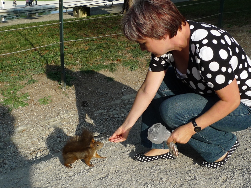 Die Eichhörnchen in Schönbrunn haben ihre Nusslieferanten gut dressiert.