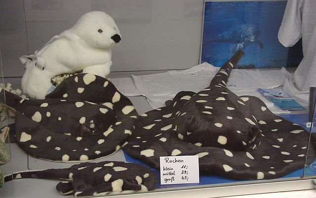 Verbreitung Der natürliche Lebensraum von Plüschotrygon sind Souvenir-Läden in Zoos und spezielle Online-Shops im Internet. Eine auffällige Besonderheit bei Plüschrochen ist, dass die Arten nur kurze Zeit in ihren natürlichen Habitaten anzutreffen sind. Über die Gründe des plötzlichen Auftauchens sowie des ebenso unvermittelten Verschwindens liegen noch keine gesicherten Erkenntnisse vor. Vermutlich werden diese starken Populationsschwankungen durch anthropogene Einflüsse verursacht.