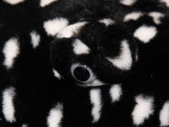 Plüschotrygon - der stachellose Plüschrochen Text und Bilder: Britta und Andreas Ochs Bei Plüschotrygon handelt es sich um stachellose Stechrochen, mit terrestrischer Lebensweise. Sie gleichen den Stechrochen, besitzen aber im Gegensatz zu den im Wasser lebenden Arten keinen Giftstachel. Ihre Dentikel (Hautzähne) sind stark verlängert und bilden einen plüschartigen Flaum. Der Gattungsname Plüschotrygon setzt sich deshalb aus Trygon (Rochen) und Plüsch zusammen. Die verschiedenen Arten unterscheiden sich durch ihre Herkunft und Zeichnungsmuster. Die Artbestimmung ist genau so schwierig wie bei den in Flüssen Südamerikas lebenden "Verwandten" der Gattung Potamotrygon.