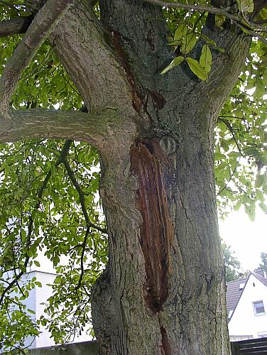 Im August 2002 hat der Blitz in unseren Nussbaum eingeschlagen.